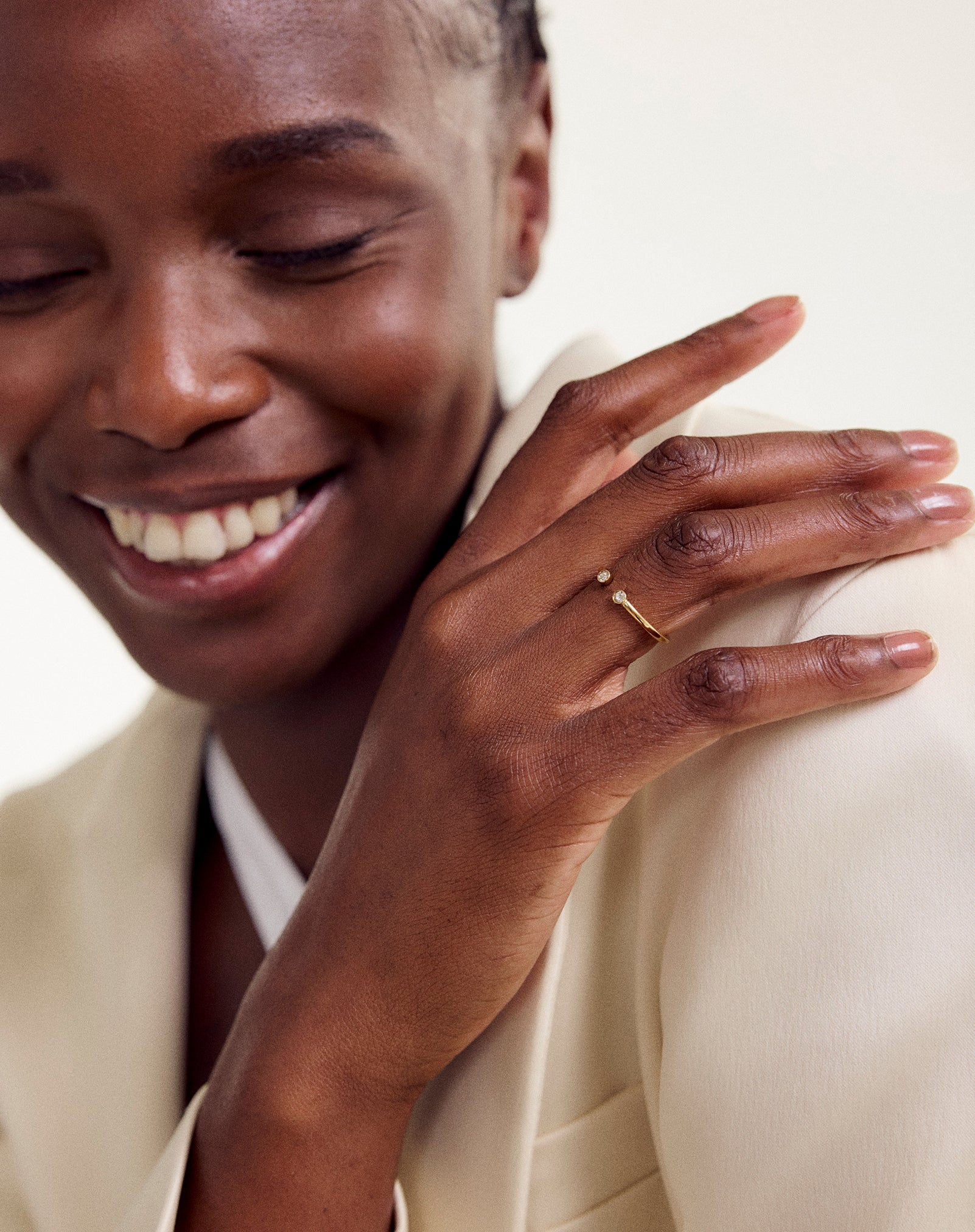 I absolutely love wearing this delicate and trendy stack ring; it complements my look perfectly.