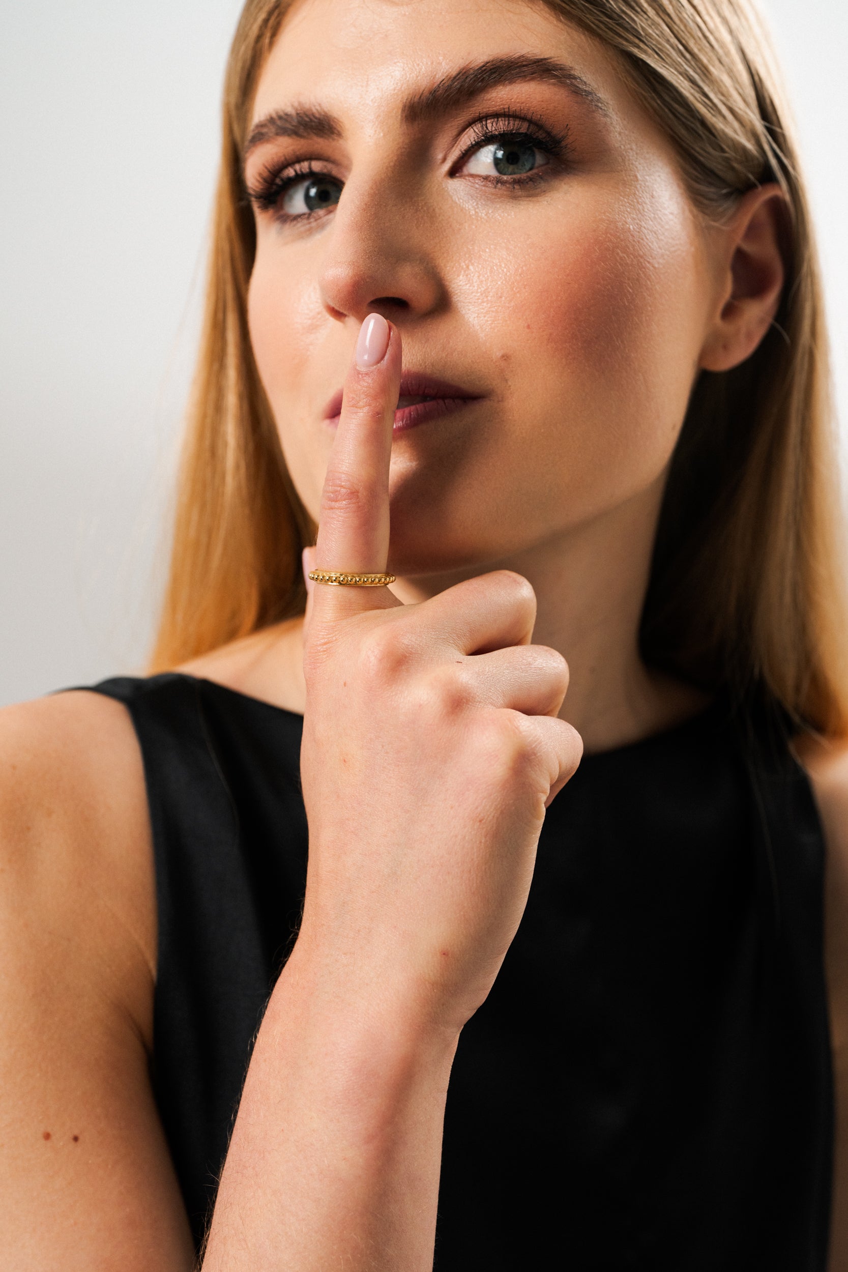 The delicate Amelie ring is a timeless piece that exudes understated elegance. It's perfect for stacking with other rings or wearing on its own for a touch of refined sophistication.