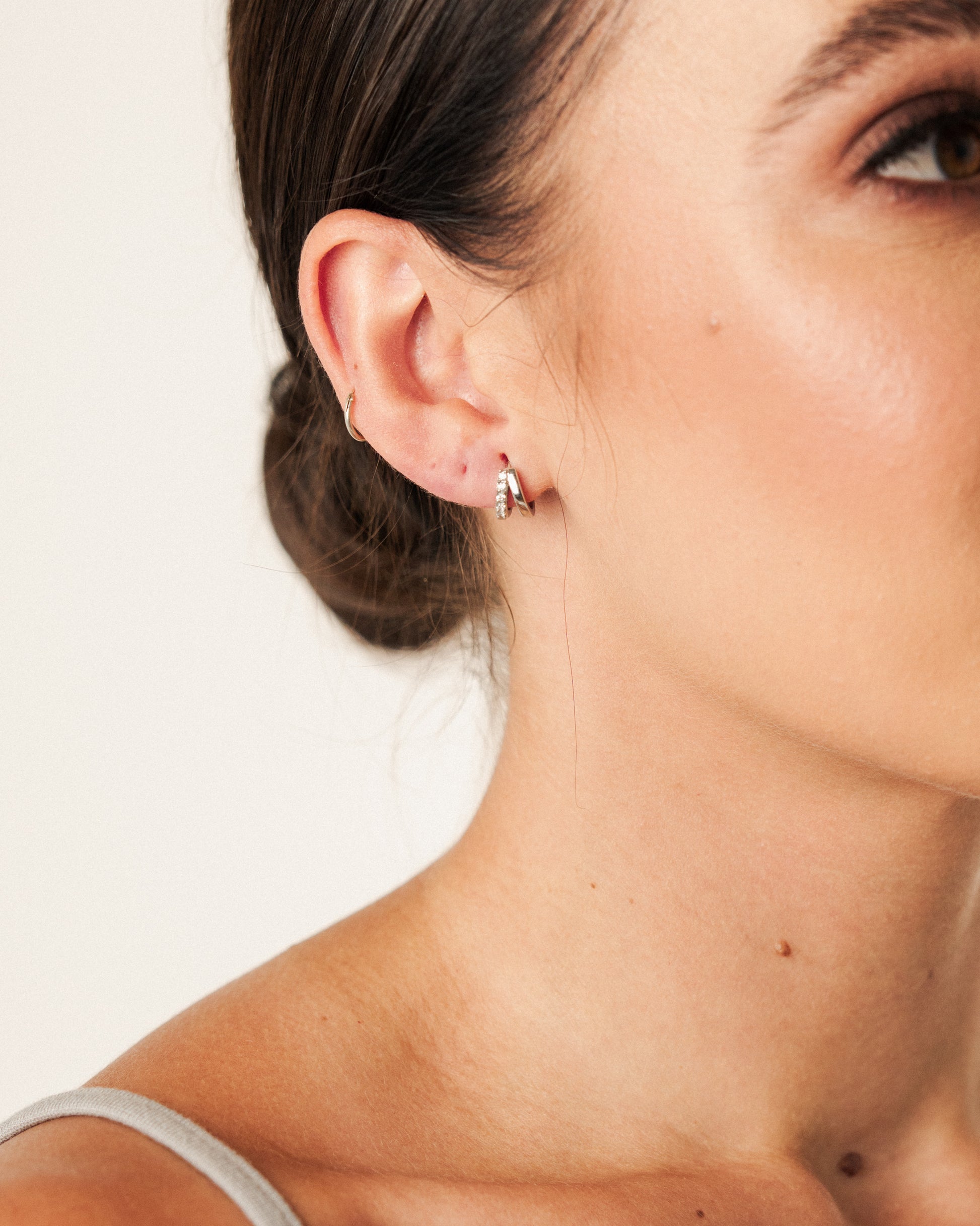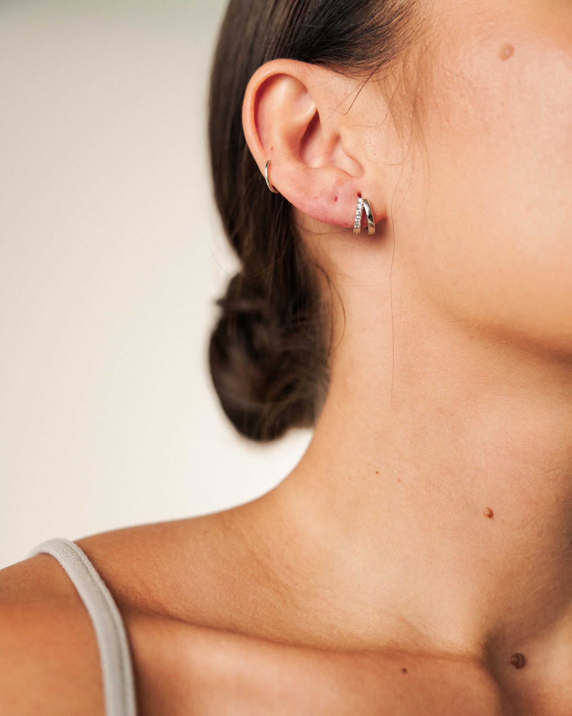 Sometimes the simplest designs make the biggest statement. These hoop earrings are a perfect example thereof. The sleek silver hoops are elevated by sparkling CZ stones, creating a look that is both elegant and understated