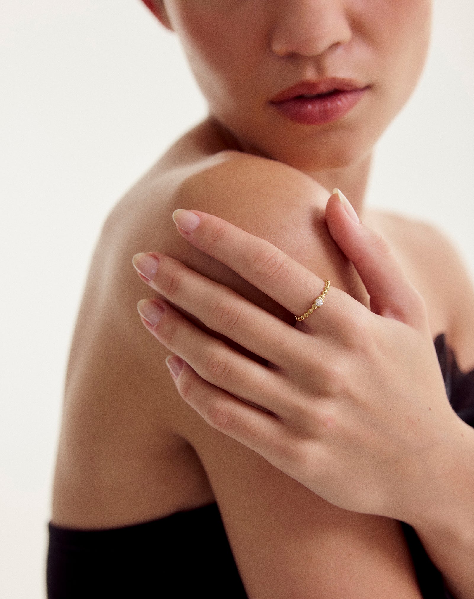 I enjoy dressing up my stack with this classic band; it adds a fun pop of texture and sparkle to my look.