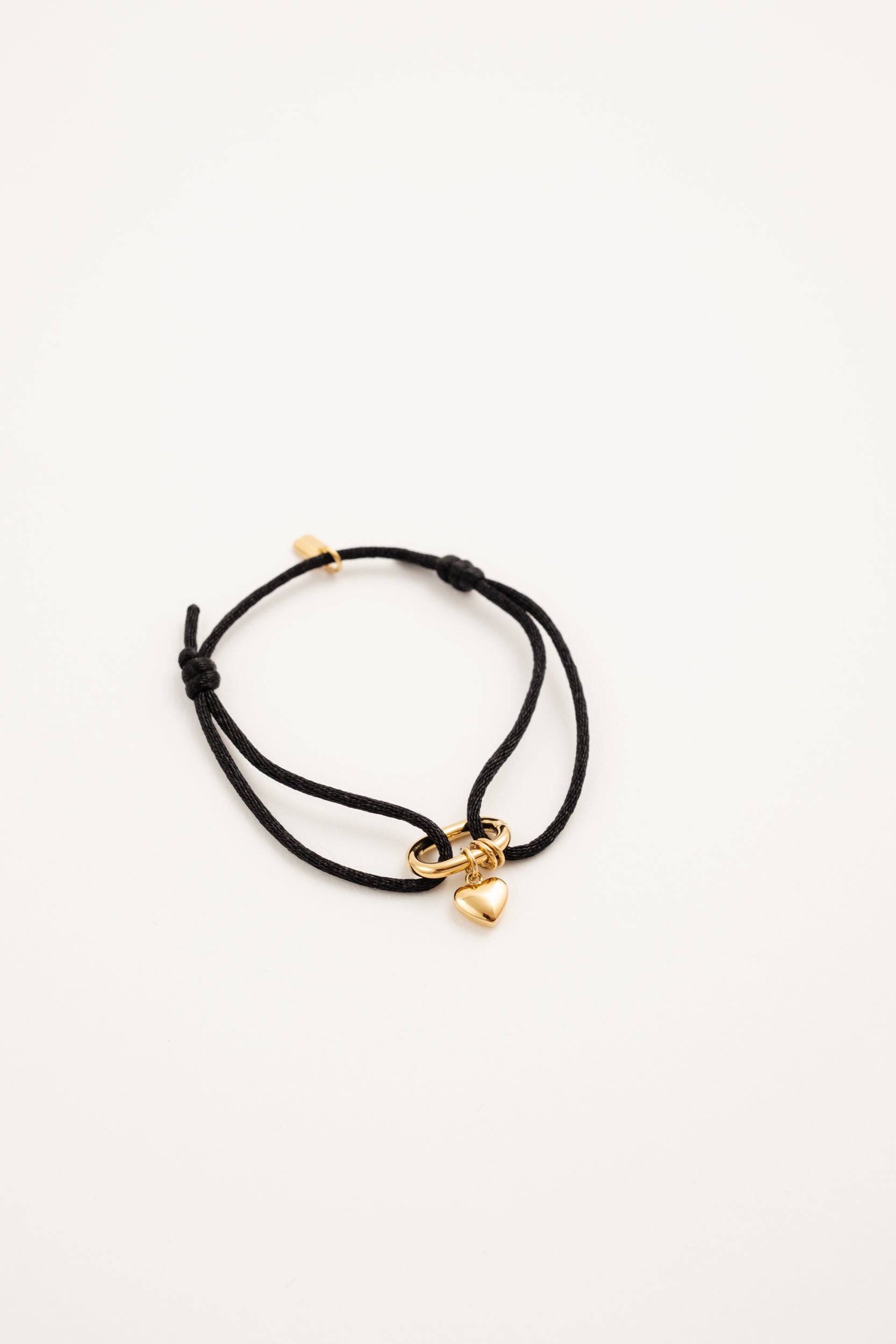 This delicate silk bracelet, known as the Gija, is a perfect accessory for adding a touch of effortless chic to your outfit. Now elevated and complimented with a heart charm finishes it off perfectly.