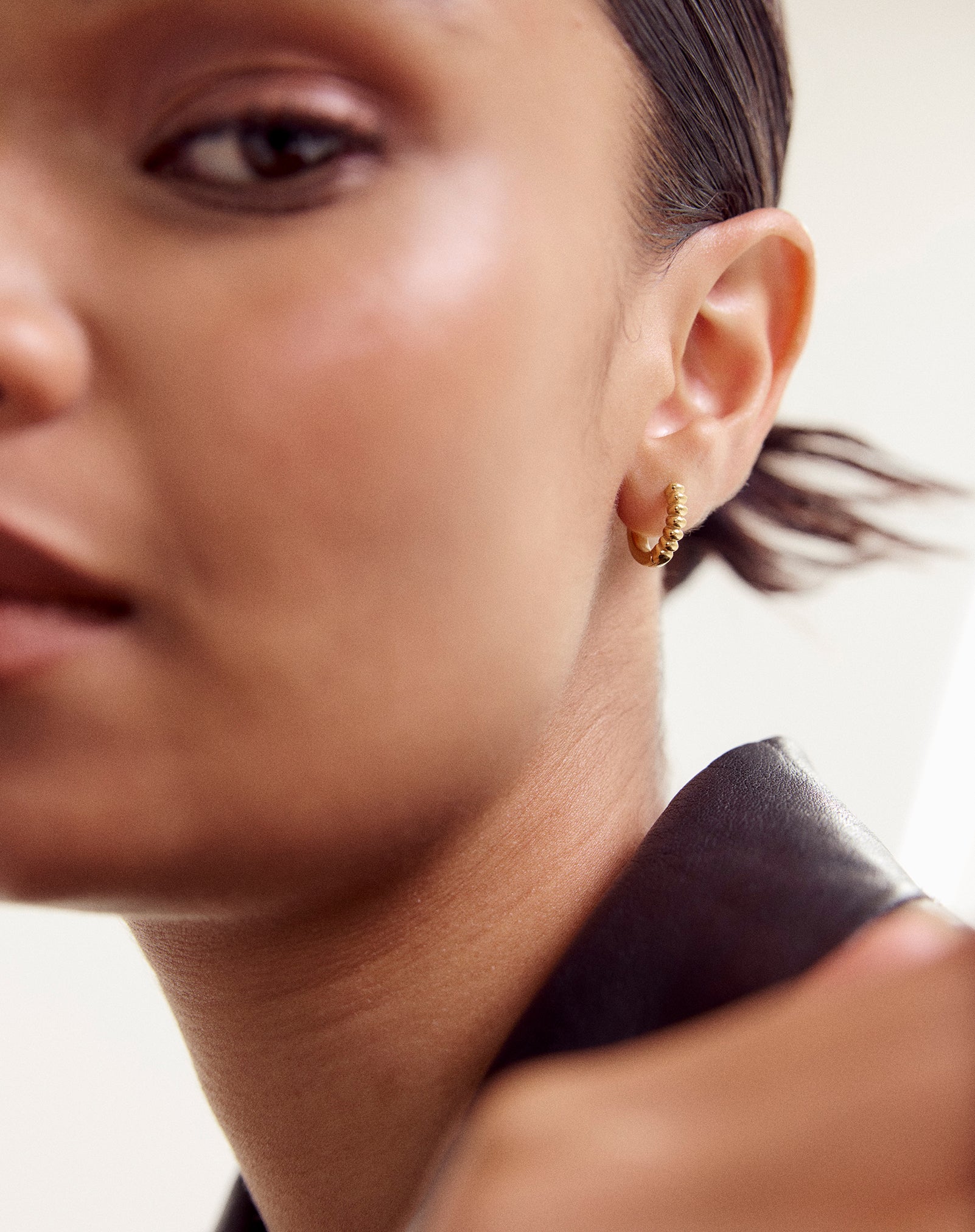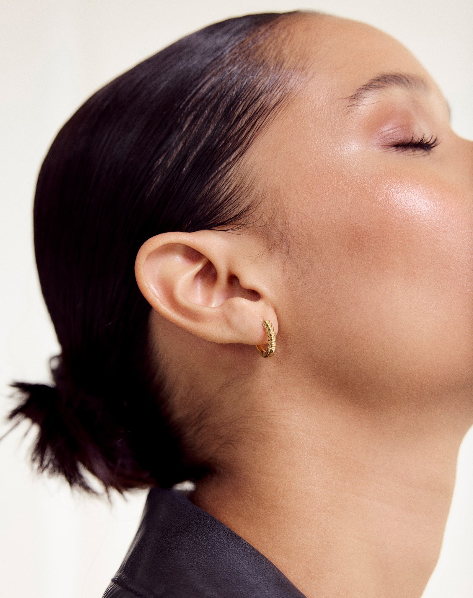 I love wearing these scalloped hoops because they blend timeless elegance with a trendy vibe, adding a timeless touch to my overall look.
