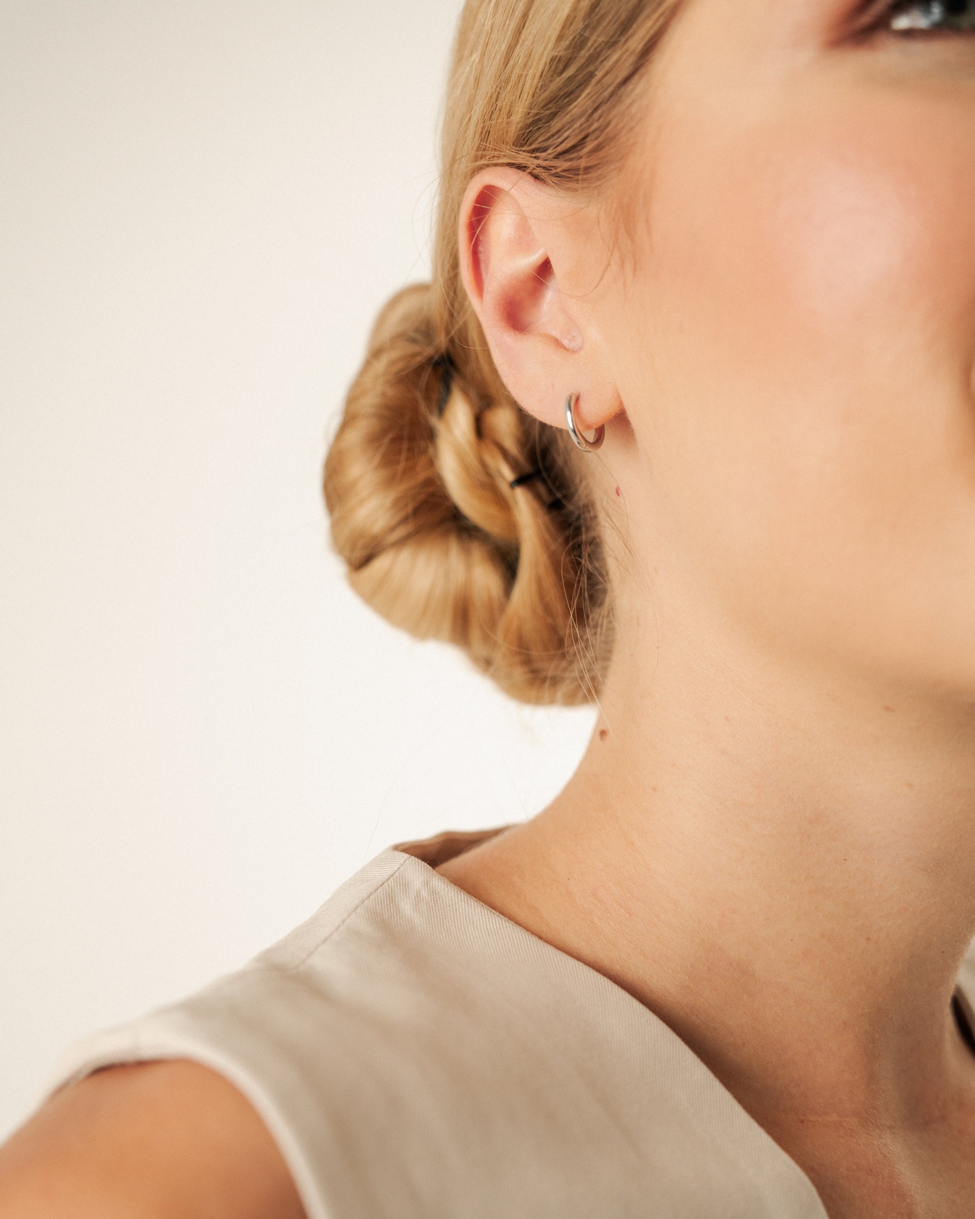 The sleek and sophisticated Lara hoop earrings will elevate any outfit. The minimalist design and polished gold finish makes it a versatile accessory that can be dressed up by adding any of the charms in the MINKI Collection.