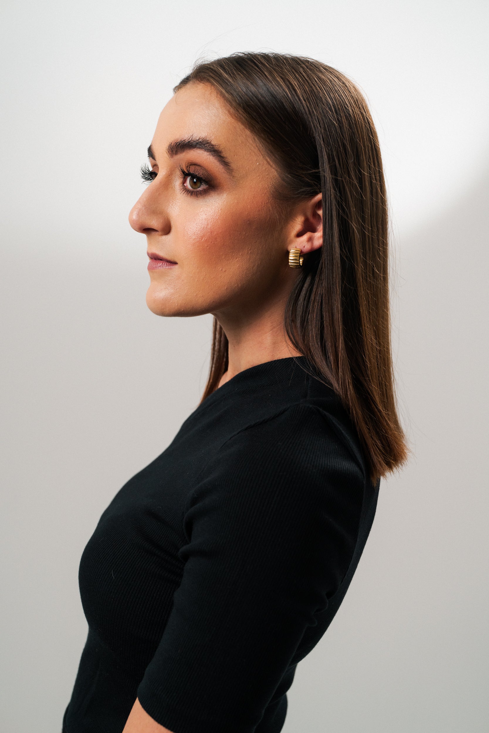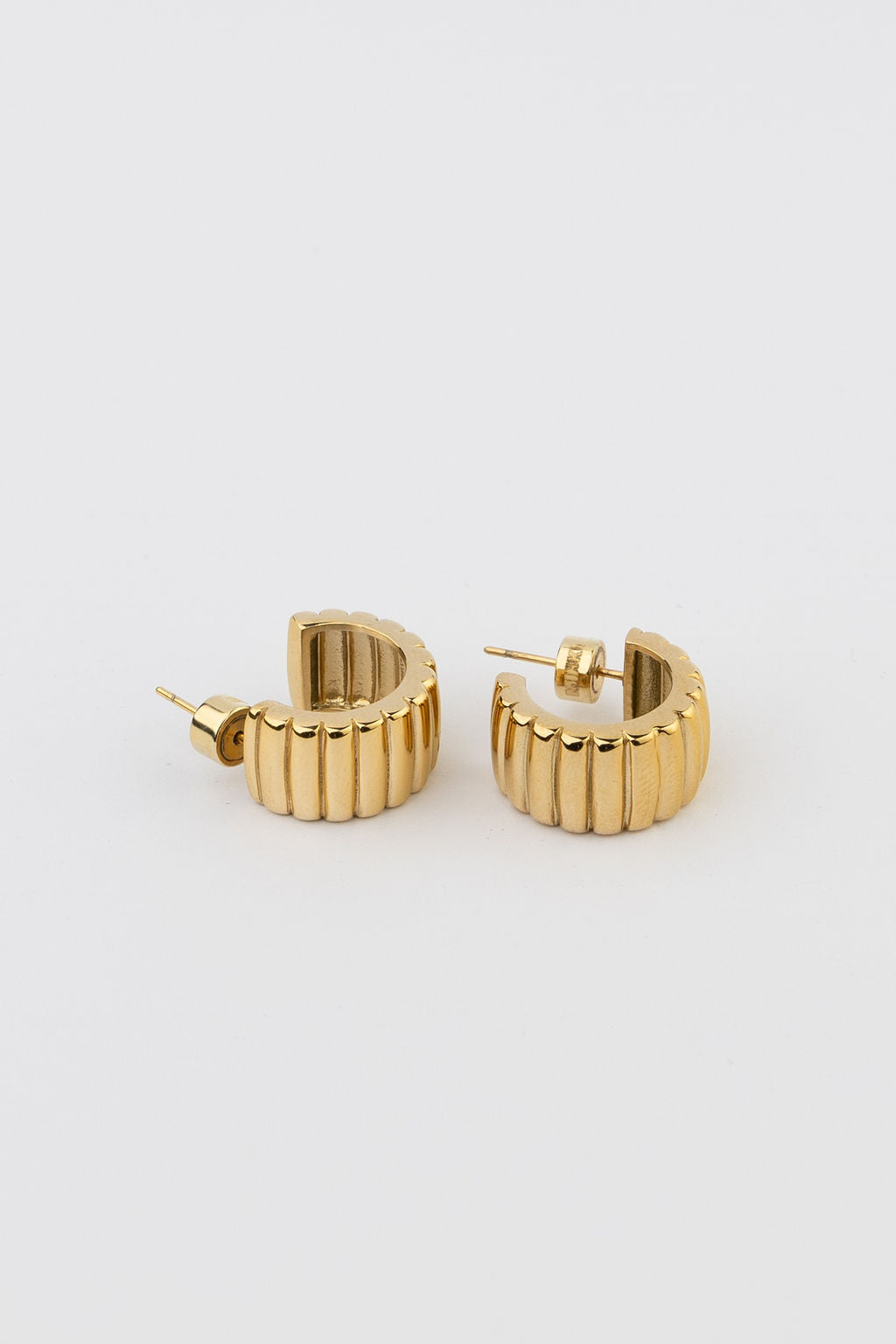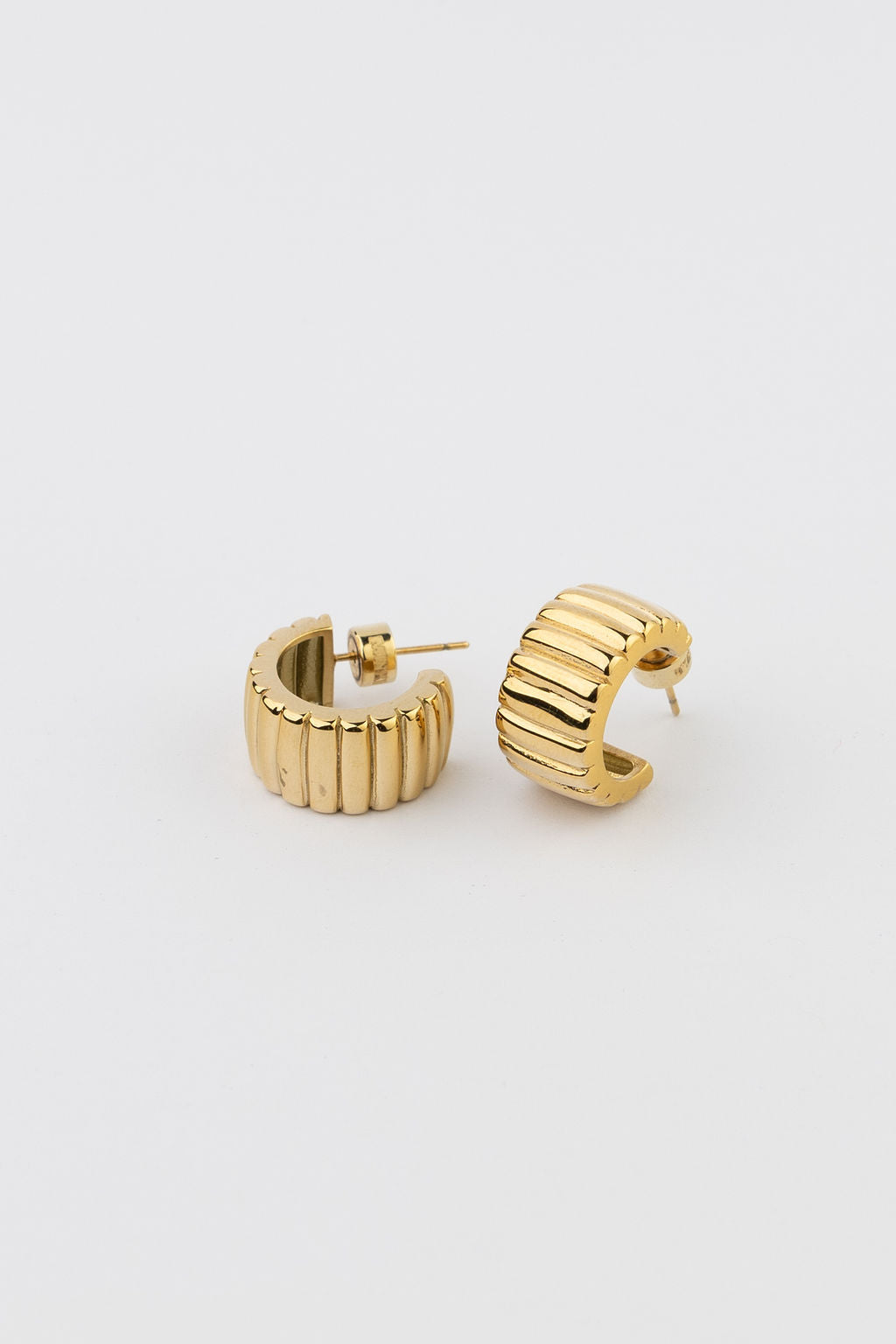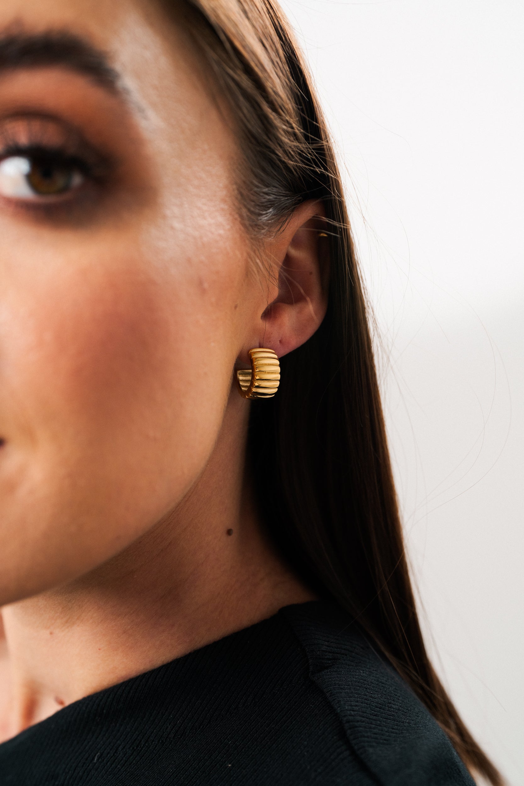 These textured hoop earrings are a modern take on a classic style. I love the way the ribbed design adds depth and dimension to the gold finish. They're perfect for elevating any outfit with a touch of sophistication.